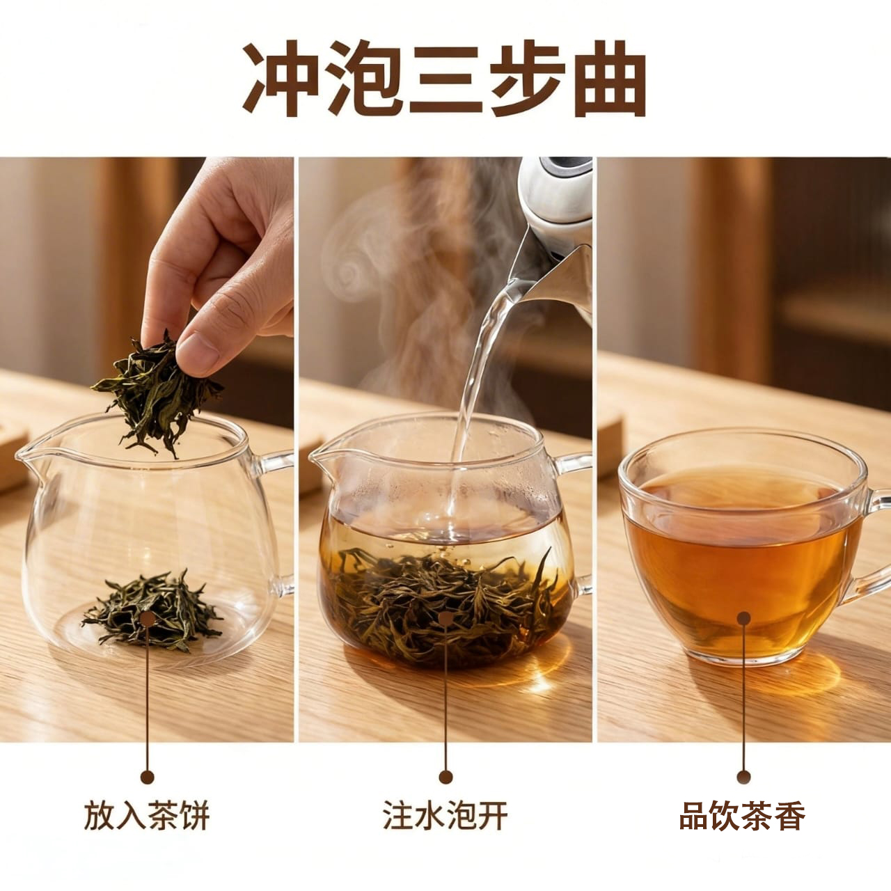 只需简单三步,就能享受糯米香与普洱醇香交融的温暖滋味。